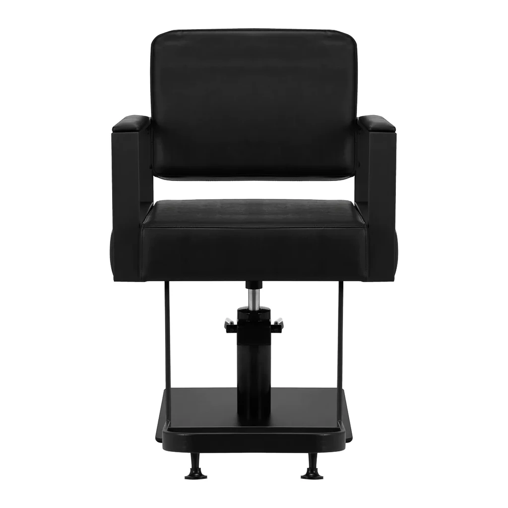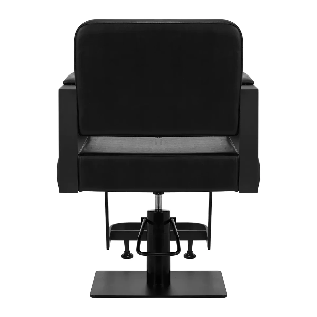 Izstrādāts maksimālam komfortam un ergonomikaiAugstuma regulēšana ir iespējama vienmērīgi ar jaudīgo hidraulisko pacēlāju, kas ļauj precīzi noregulēt sēdekļa līmeni no 50 līdz 64 cm, pat ja klients jau sēž krēslā. Šis ergonomiskais dizaina elements nodrošina, ka gan frizieri, gan klienti var baudīt optimālu komfortu ilgstošu procedūru laikā. Apvilktā atzveltne no sintētiskās ādas nodrošina lielisku muguras atbalstu, un stratēģiskā atvere starp atzveltni un sēdekli atvieglo salona tīrības uzturēšanu starp procedūrām.Uzlabojiet darba plūsmuPilnīgas rotācijas mehānisms nodrošina frizierim vienmērīgu kustību, kas vienkāršo darba procesu. Izturīgā pamatne nodrošina stabilitāti, savukārt elegantā matētā apdare ne tikai piešķir modernu pieskārienu, bet arī atvieglo tīrīšanu. Ģeometriski veidotie roku balsti pareizi pozicionē klienta plecus, nodrošinot ērtu un precīzu procedūru katru reizi.Izturība un stilsAr augstas kvalitātes konstrukciju no deformācijas izturīgām putām un izturīgas, viegli tīrāmas sintētiskās ādas Gabbiano Modena ir ieguldījums ilgstošai lietošanai. Tā izturība pret mitrumu un nodilumu nodrošina, ka tas saglabājas labākajā stāvoklī pat pēc daudzu gadu lietošanas. Modernais dizains un melnie toņi padara to par stilīgu papildinājumu jebkuram modernam salonam. Gabbiano Modena nav tikai friziera krēsls - tā ir funkcionāla un eleganta mēbele, kas paaugstina jebkura salona standartu. Detalizēti izmēri ir norādīti attēlā.Komplektā ietilpst: sēdeklis, izpildmehānisms ar pamatni, kāju balsts. Dati: